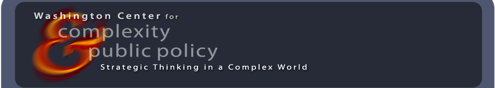 The Washington Center for Complexity & Public Policy helps individuals and organizations strengthen their strategic thinking & planning, foresight and early warning capabilities. As Thought Leaders, the work of the Center is based on the premise that insights from complex systems research—complexity science—provide a powerful new theory-driven framework for developing insight about the present and foresight about the future.